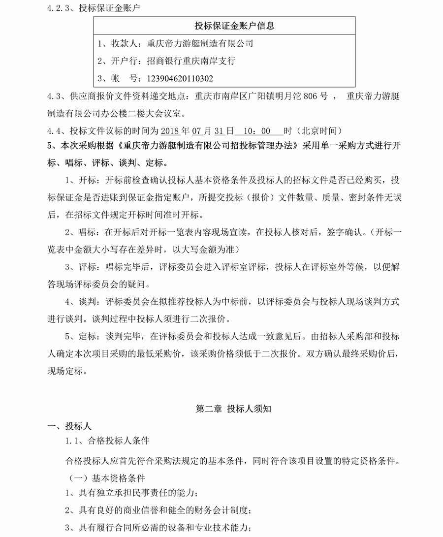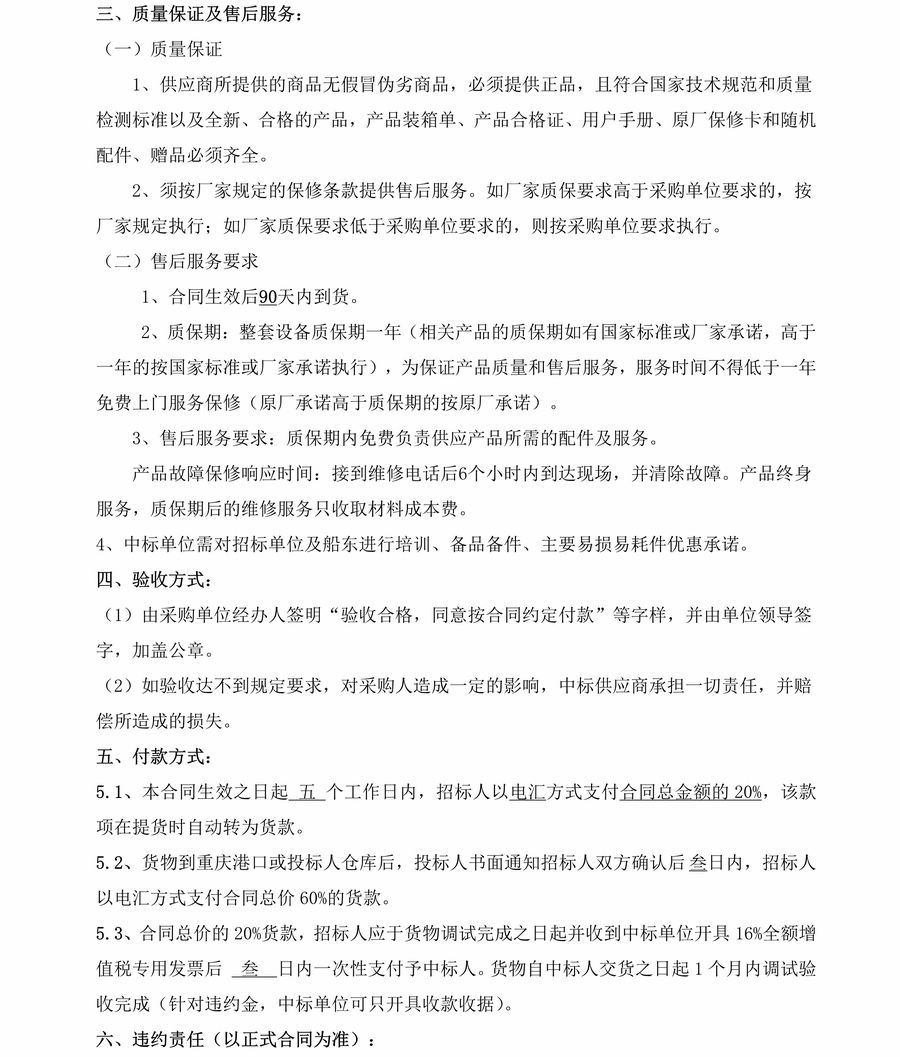 重慶市港航管理局20米工作艇發動機組招標公告