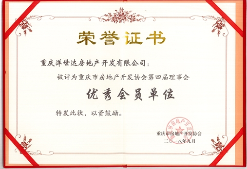 同時,經市開發協會認真評選研究,決定對市內80家會員單位予以表彰:重慶洋世達房地產開發有限公司榮獲第四屆理事會“優秀會員單位”稱號,公司員工王瑤獲得“重慶市房地產開發協會第四屆理事會先進個人”證書。
