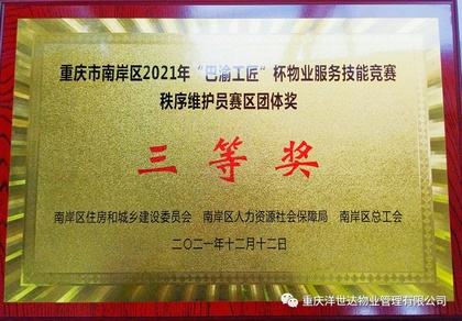 2021年12月11月、12日,南岸區(qū)住房和城鄉(xiāng)建設委員會、南岸區(qū)人力資源社會保障局、南岸區(qū)總工會組織的"巴渝工匠"杯物業(yè)服務技能大賽在南岸區(qū)重慶建筑工程職業(yè)學院隆重舉行。