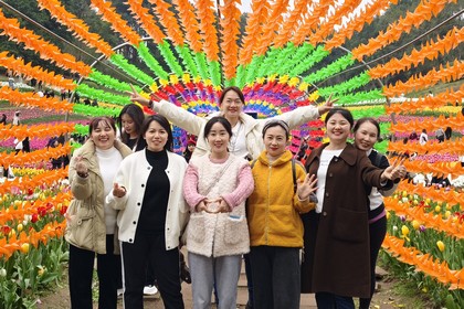 活動(dòng)伊始,員工們來(lái)到了菩提山下開(kāi)展了趣味十足的團(tuán)建小活動(dòng),大家都表現(xiàn)積極,踴躍參與。小游戲“破冰分組”、“爬山比賽”不僅考驗(yàn)了員工們的團(tuán)隊(duì)協(xié)作能力和反應(yīng)能力,更讓她們?cè)谳p松愉悅的氛圍中放開(kāi)了束縛,拋去了工作中的壓力,感受到了生活的小確幸。活動(dòng)之余,員工們來(lái)到了長(zhǎng)壽湖欣賞五彩斑斕的郁金香花海,層層花海馥郁芬芳,一朵朵花球在風(fēng)中搖曳輕擺,花姿優(yōu)雅、色彩繽紛,紅的熱情奔放,紫的高貴優(yōu)雅,白的純凈溫柔。員工們?cè)诨êV信恼樟裟睿瑲g聲笑語(yǔ)不斷,大家盡情享受著這份來(lái)自大自然的美好饋贈(zèng)。