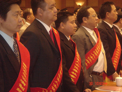 5月30日,中共重慶市委、市人民政府在“渝州賓館”隆重召開“重慶市非公有制經濟人士優秀社會主義事業建設者”表彰大會。市委書記汪洋發表重要講話,王鴻舉、黃奇帆、邢元敏等市領導參加會議,為獲獎者頒獎并合影留念。全市共128位非公有制經濟人士受到市委、市政府表彰,集團公司董事長、總裁楊勇同志(下右圖左數第三位)獲獎。