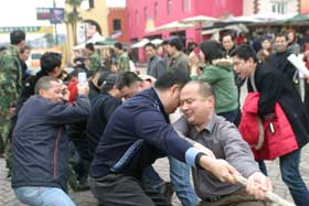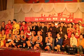 2007年2月15日,“集團公司2007年春節(jié)年拜會”新春盛典在美心.洋人街隆重舉行?;顒訌脑缟?點開始,持續(xù)到晚上8點結(jié)束,主要活動內(nèi)容有拔河比賽、文藝表演、發(fā)紅包和聚餐等,集團公司、各子公司員工及部分家屬約480人參加了當(dāng)天的活動。